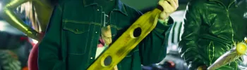 A Device-like cricket-style bat in a Mexican corrido music video